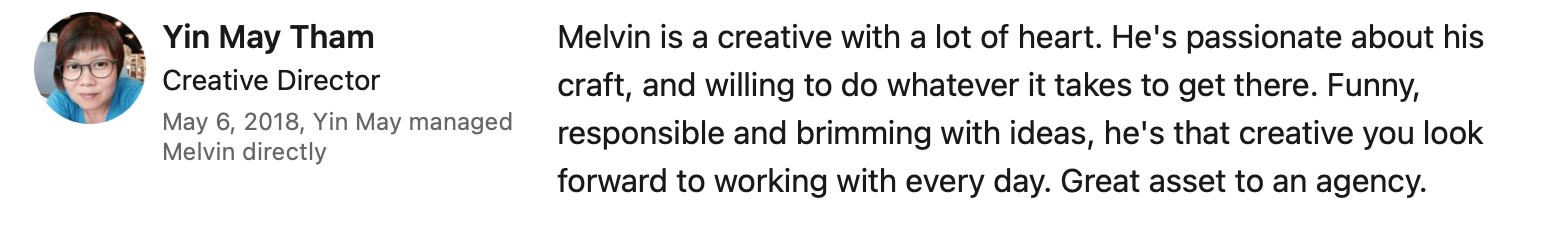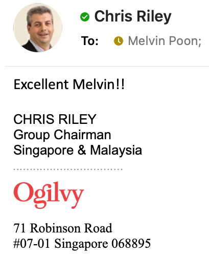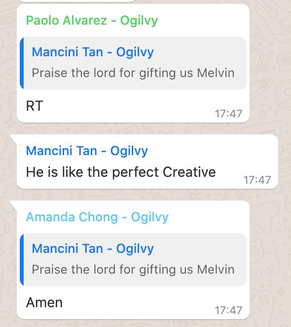 Ogilvy Singapore and Malaysia's group chairman, on one of Melvin's initiatives