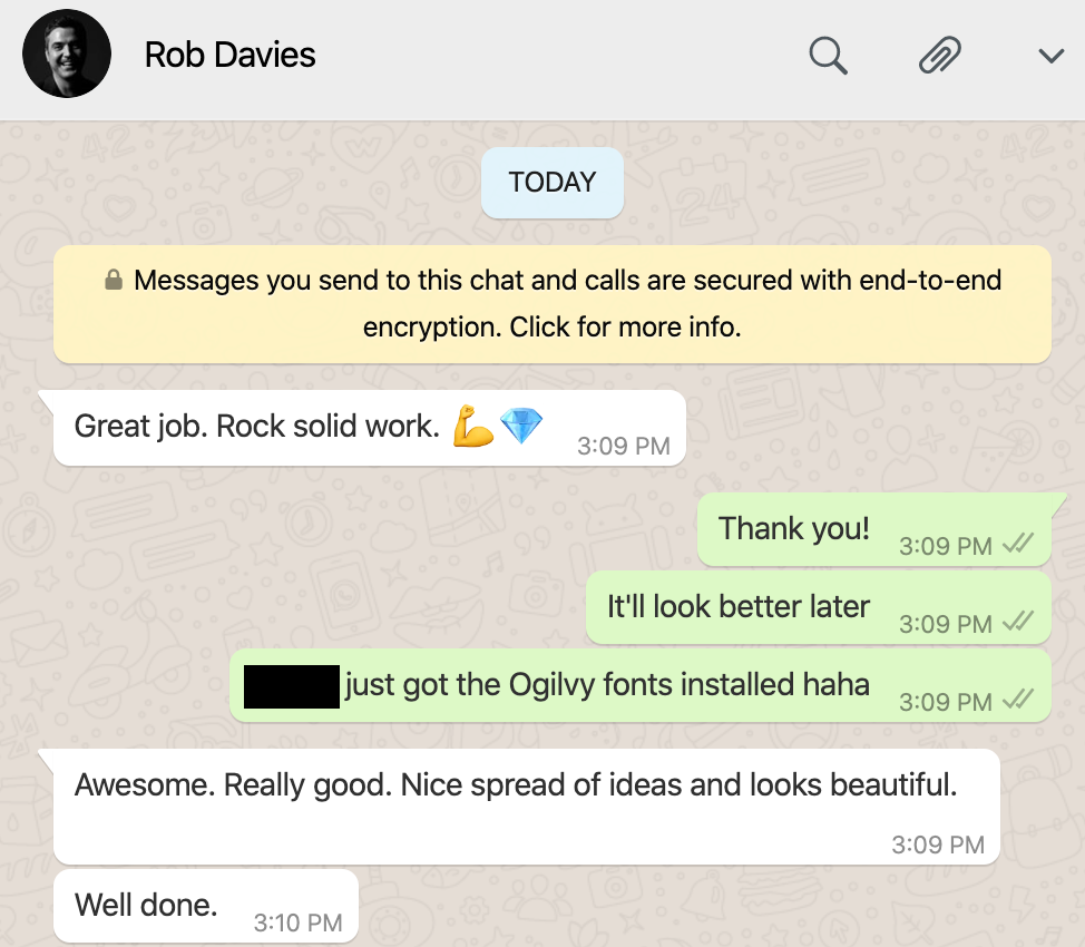 Ogilvy's CCO, CD, and PM – on one of Melvin's pitch decks